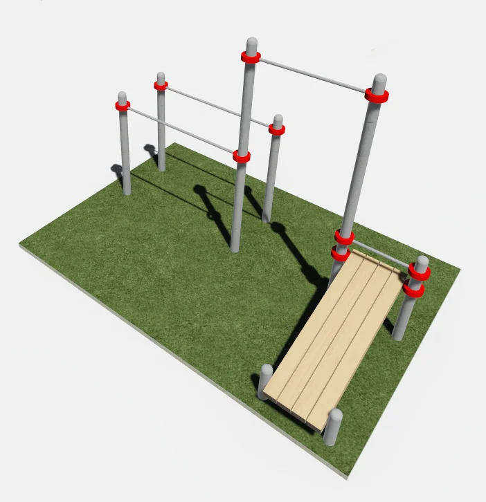 Перекладина турника для подтягиваний крепится на высоте 2500 мм от уровня основания к опорным столбам высотой 2600 мм.