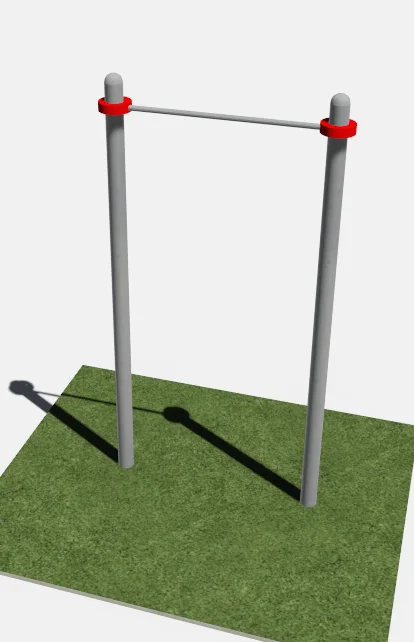 Опорные столбы высотой 2600мм в количестве 2 единиц, диаметр которых предоставляется на выбор, перекладина, расположенная на высоте 2500 мм от поверхности основания.